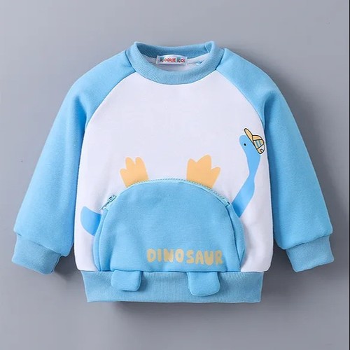Full Raglan Sleeves Winter T-Shirt With Dino Print & Pocket