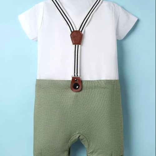 Cotton Knit Half Sleeves Solid Color Party Romper With Bow & Suspenders comfort