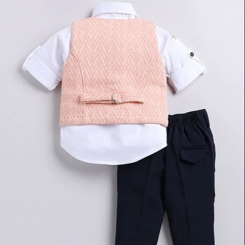 Robo Fry Cotton Knit Full Sleeves Party Suit with Hat & Bow Solid Colour