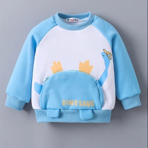 Full Raglan Sleeves Winter T-Shirt With Dino Print & Pocket