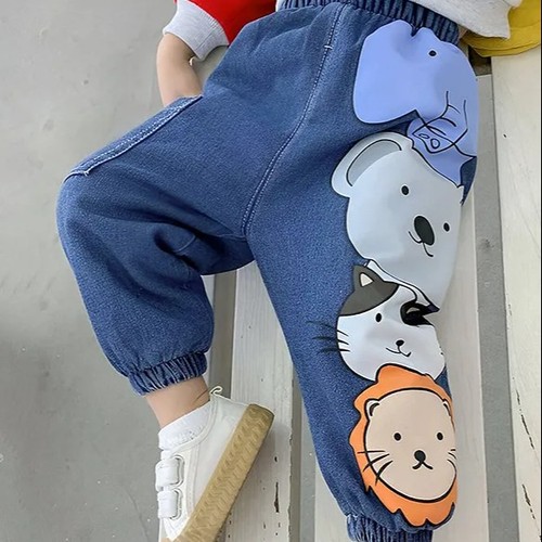 Cotton Denim Ankle Length Animals Printed Baggy Fit Pant