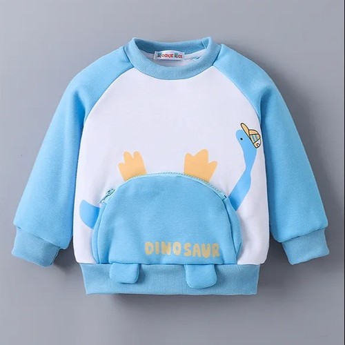 Full Raglan Sleeves Winter T-Shirt With Dino Print & Pockets