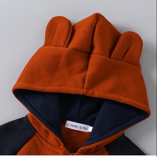 Full Raglan Sleeves Hooded Sweatjacket With Lion Print & Kangaroo Pockets